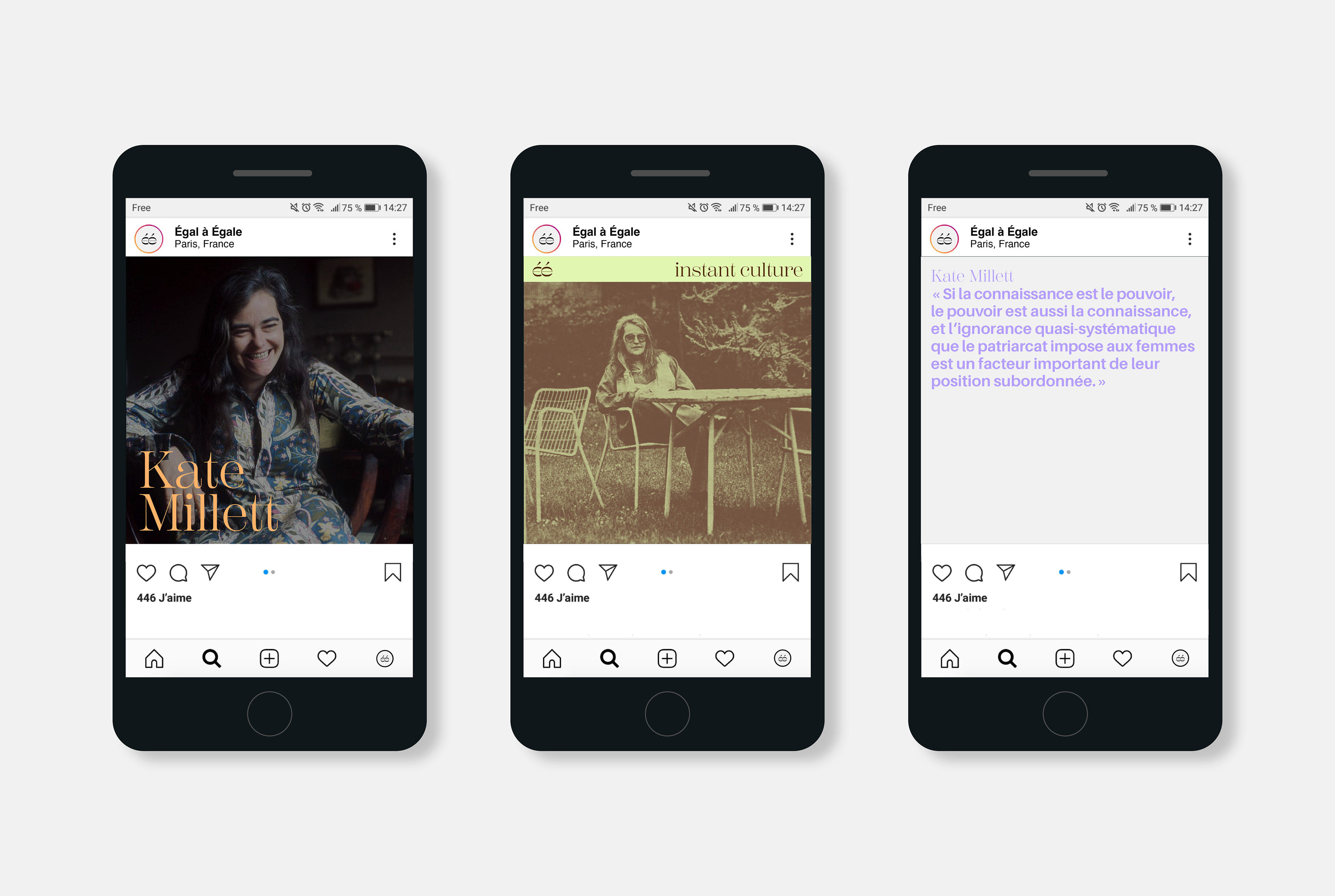 Visual identity for the feminist association D’égal à égale, which promotes equality between women and men through education through interventions and training in schools and businesses.